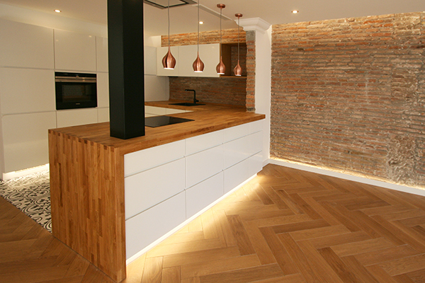 Por supuesto, todos los que tu quieras: maderas naturales nobles, melaminas, alistonados, contrachapados, aglomerados, paneles compuestos, encimeras de mármol, piedra, madera, Silestone, etc. Es muy importante seleccionar el acabado que mejor se ajuste al proyecto, no solo en cuanto a precio o resistencia, sino también a colores y formas.